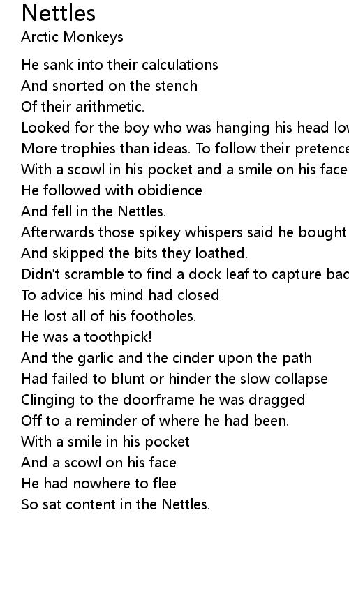 Didn't scramble to find a dock leaf to capture back our hope |