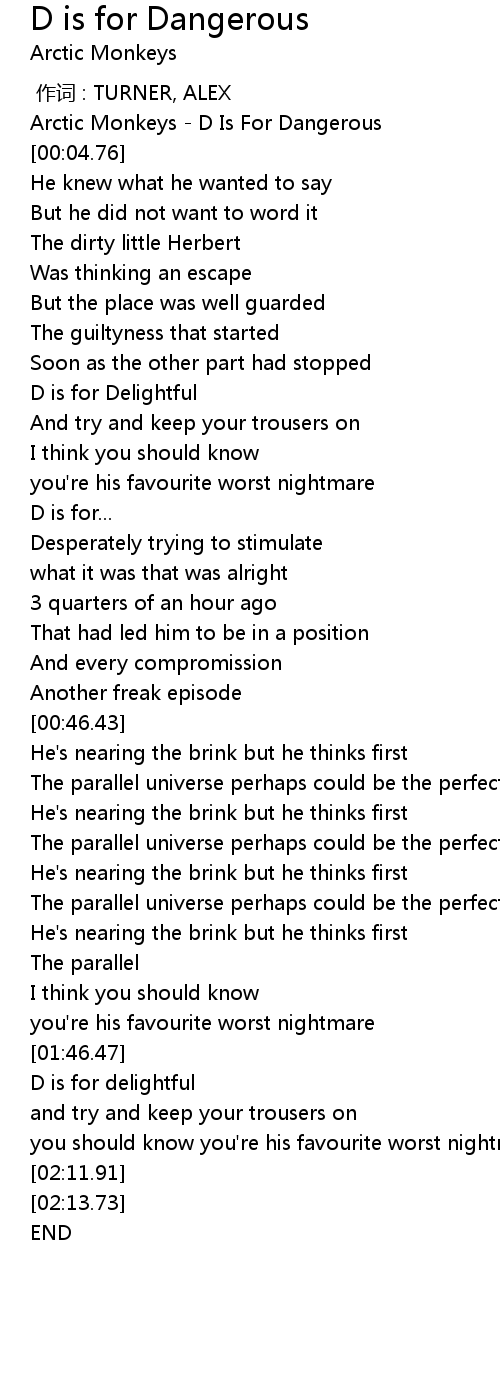 | [00:00.00] | Arctic Monkeys - D Is For Dangerous |