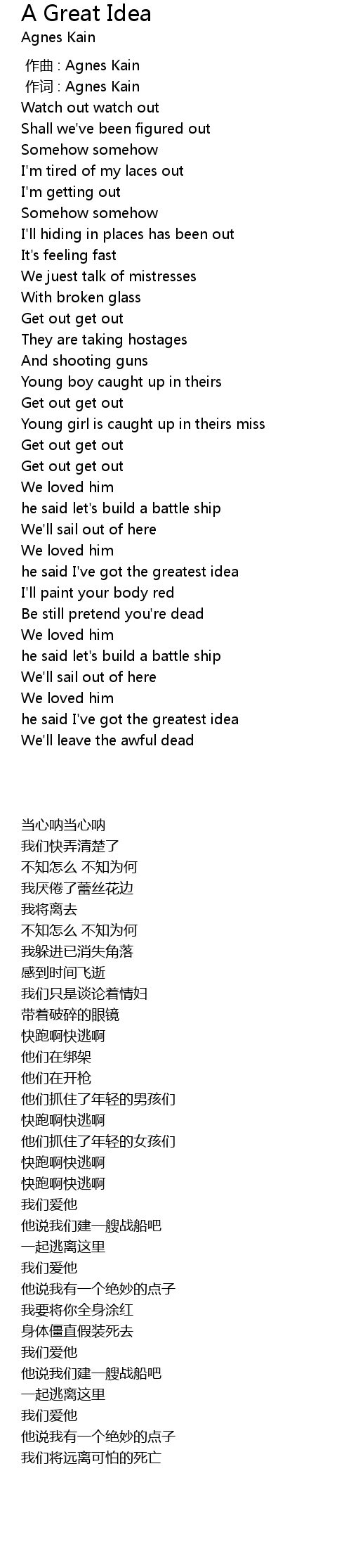| [00:00.00] | zuò qǔ : Agnes Kain |