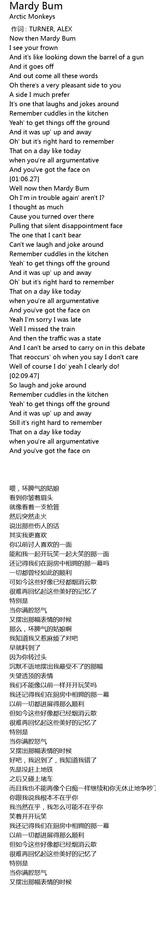 | [00:00.00] | 作词 : TURNER, ALEX |