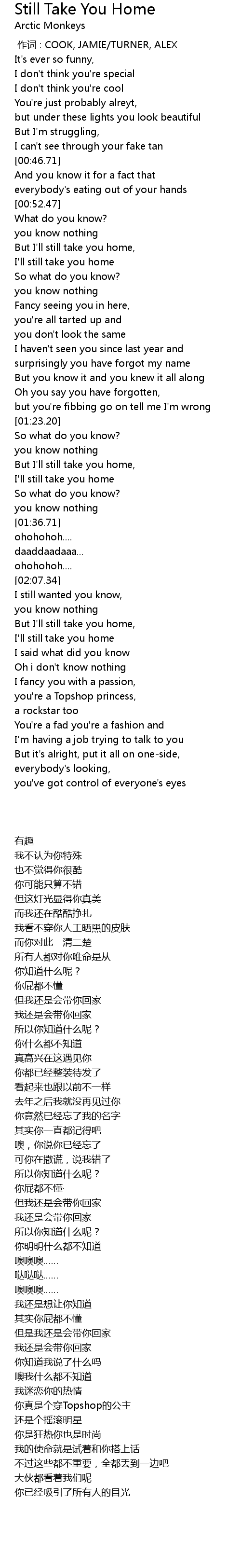 | [00:00.00] | 作词 : COOK, JAMIE/TURNER, ALEX |