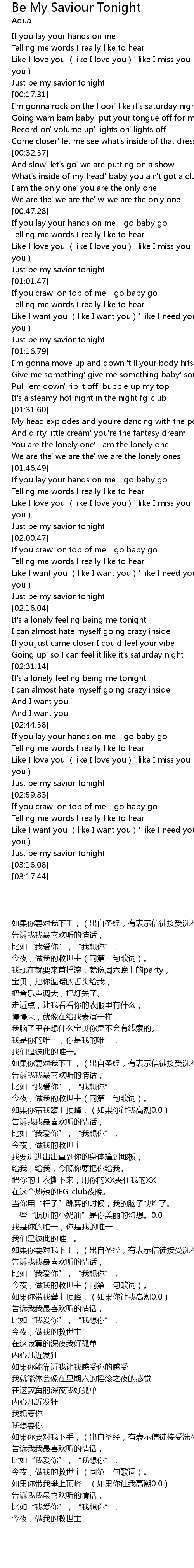 | [00:15.11] | Just be my savior tonight |
