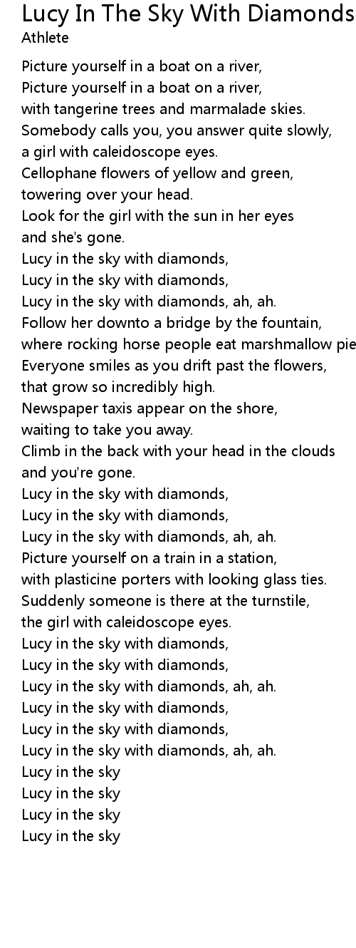 Lucy in the sky with diamonds, ah, ah. |
