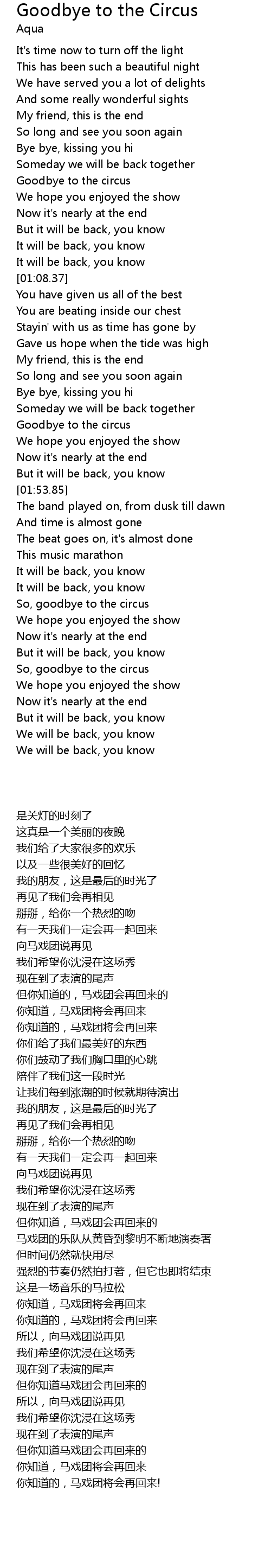 | [00:41.62] | Goodbye to the circus |