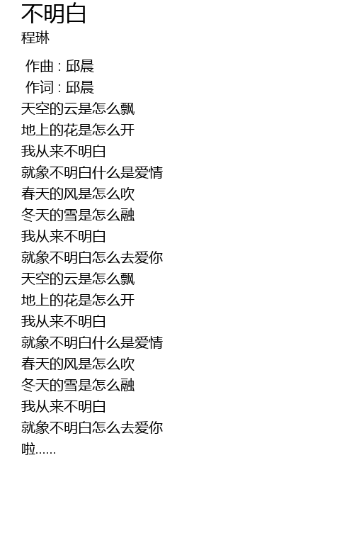 | [00:41.623] | wǒ cóng lái bù míng bái |