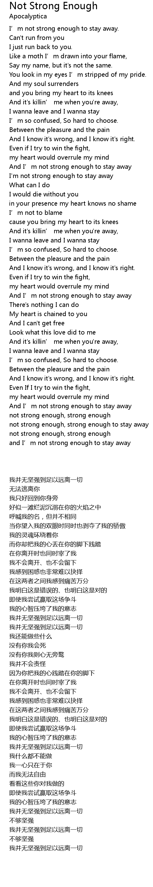 | [01:22.459] | I'm not strong enough to stay away |