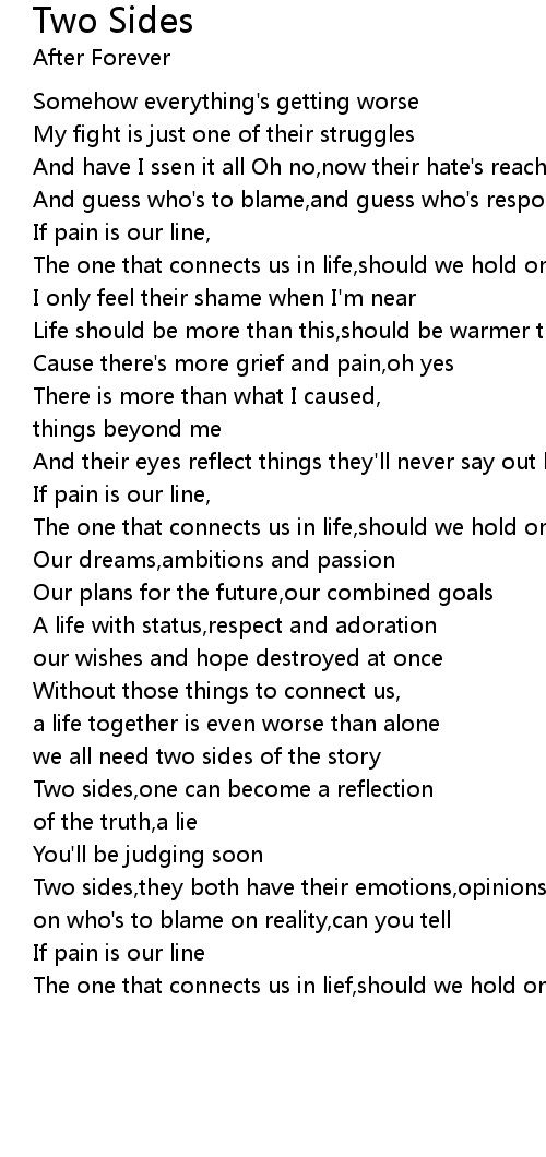 Two sides,they both have their emotions,opinions and thoughts |