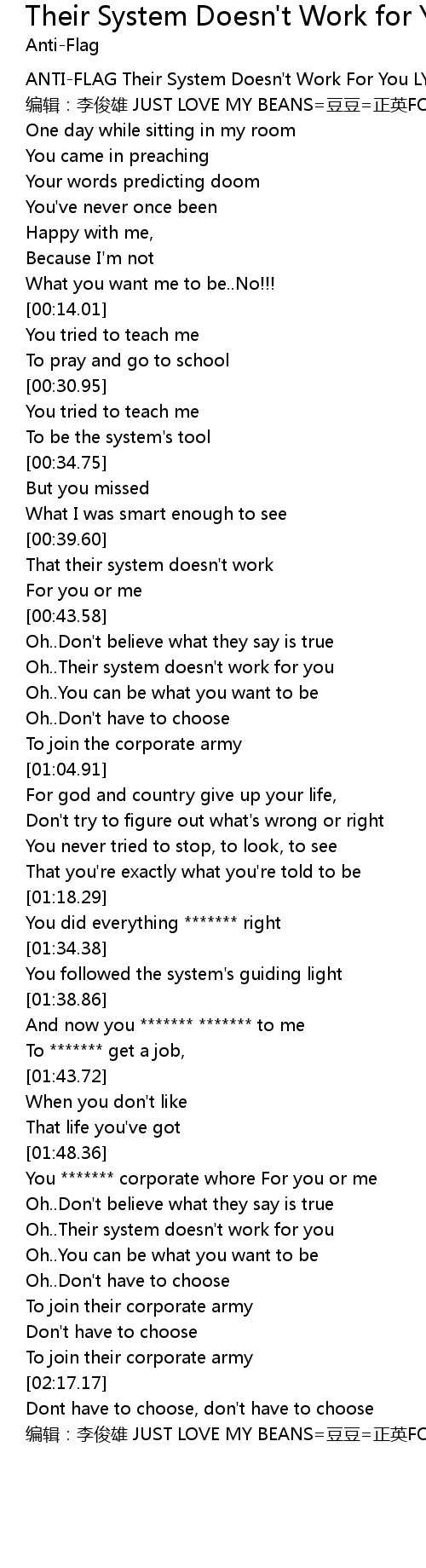 | [00:00.43] | ANTI-FLAG Their System Doesn't Work For You LYRICS |