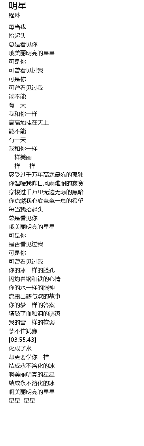 | [04:24.94] | 星星 星星 |
