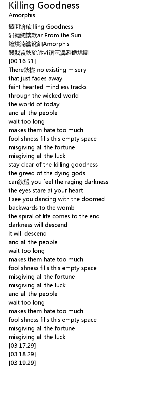 | [00:00.00] | 鏍囬锛欿illing Goodness |
