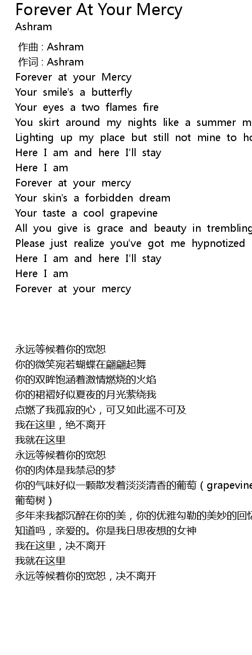 | [03:04.17] | Forever at your mercy |