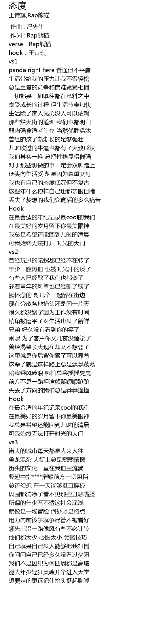 | [00:01.000] | zuò cí : Rap xióng māo |