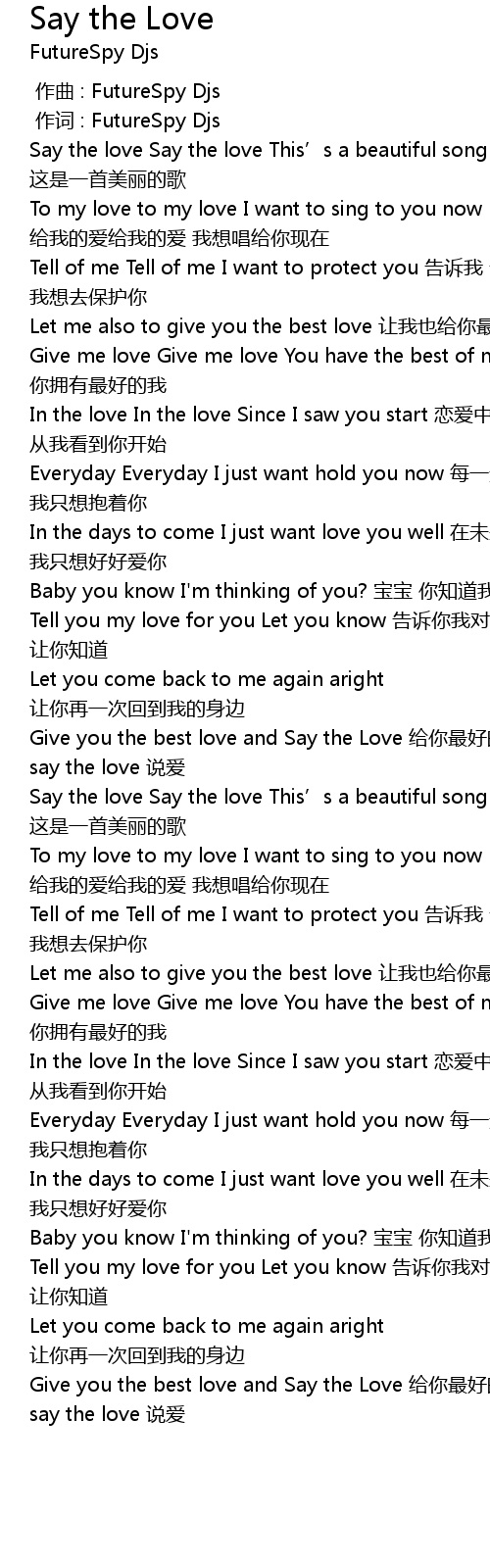 | [00:08.421] | Say the love Say the love This’s a beautiful song 说爱说爱 这是一首美丽的歌 |