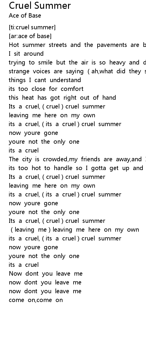 | [00:51.959] | Its a cruel,(cruel)cruel summer |
