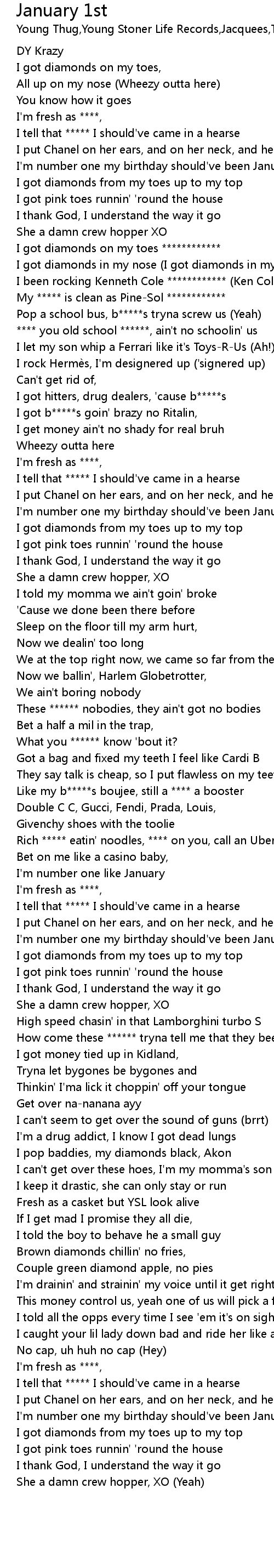 | [00:44.71] | My ***** is clean as Pine-Sol ************ |