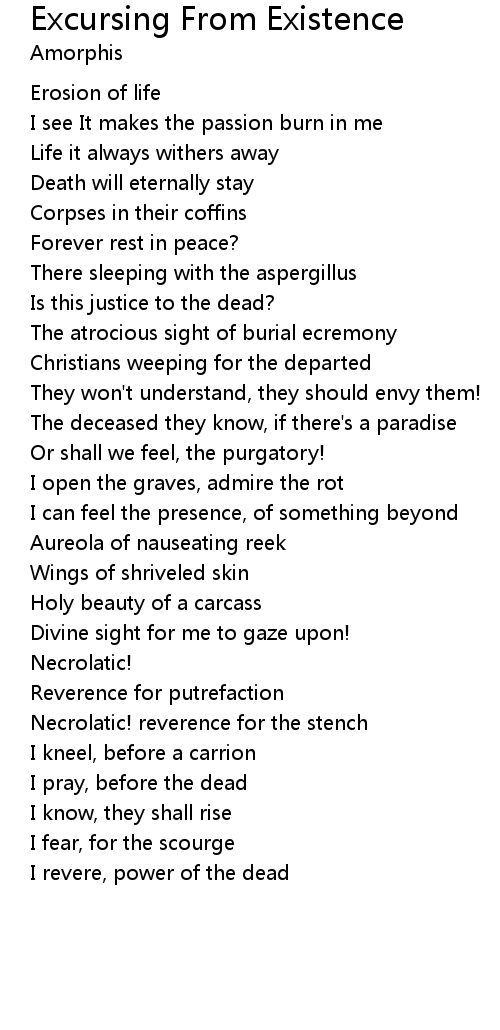 Excursing From Existence Lyrics