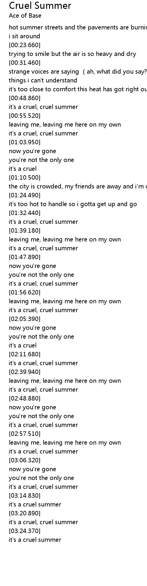 | [01:35.490] | it' s a cruel, cruel summer |