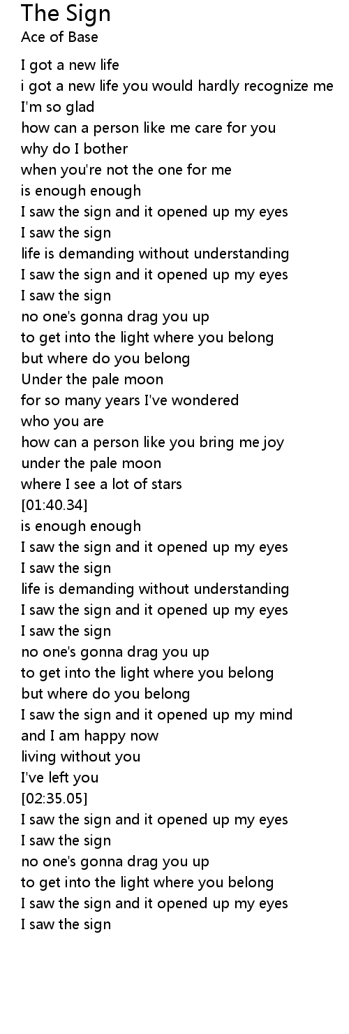 I saw the sign and it opened up my eyes |