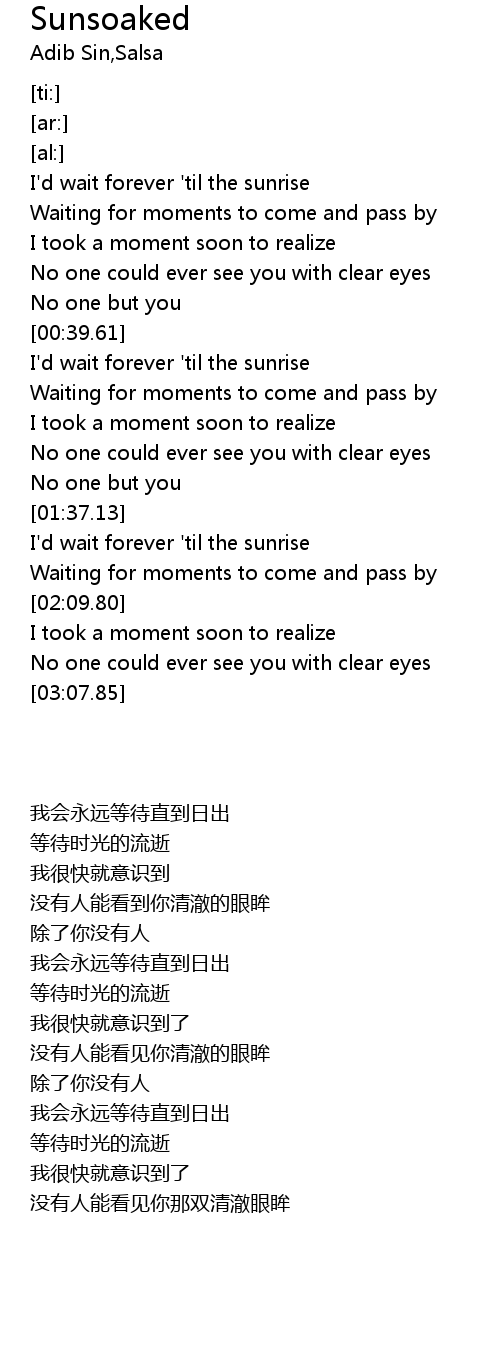 | [00:57.14] | I'd wait forever 'til the sunrise |