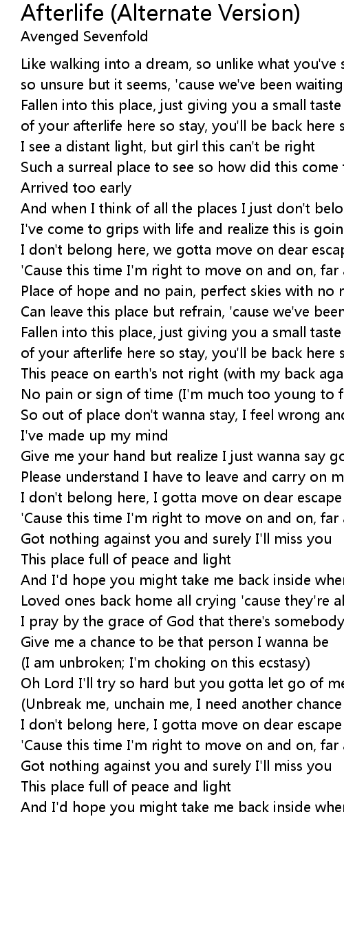 I don't belong here, we gotta move on dear escape from this afterlife |