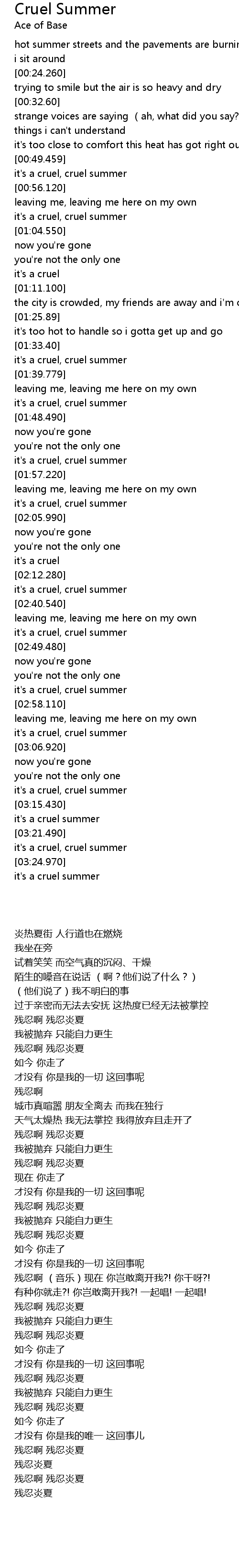 | [03:22.900] | it' s a cruel, cruel summer |