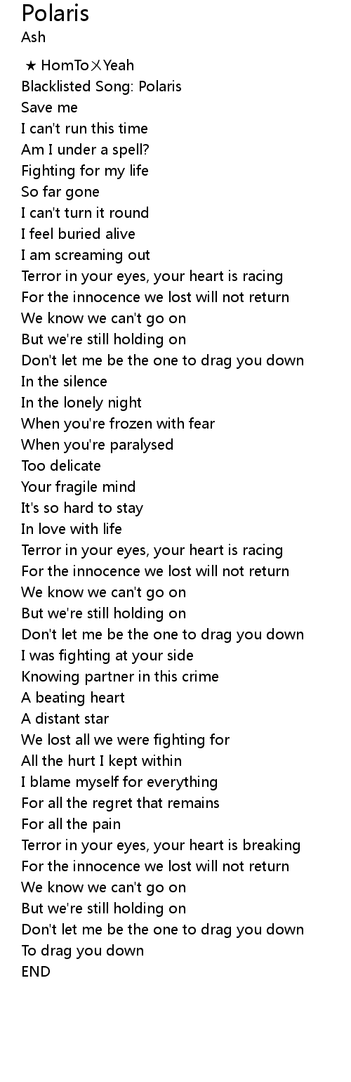 | [00:08.33] | Blacklisted Song: Polaris |