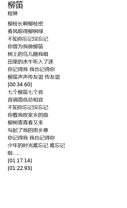 | [00:39.98] | 七个柳笛七个音 |