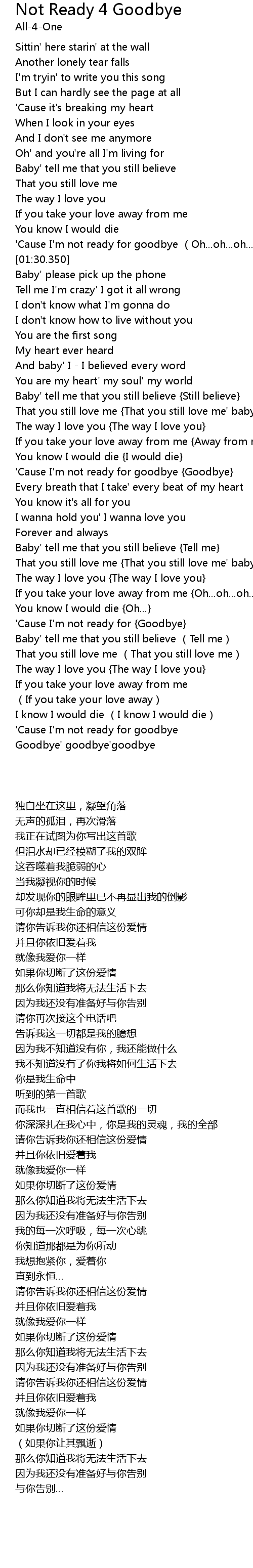 | [01:19.460] | ' Cause I' m not ready for goodbye Oh... oh... oh... |
