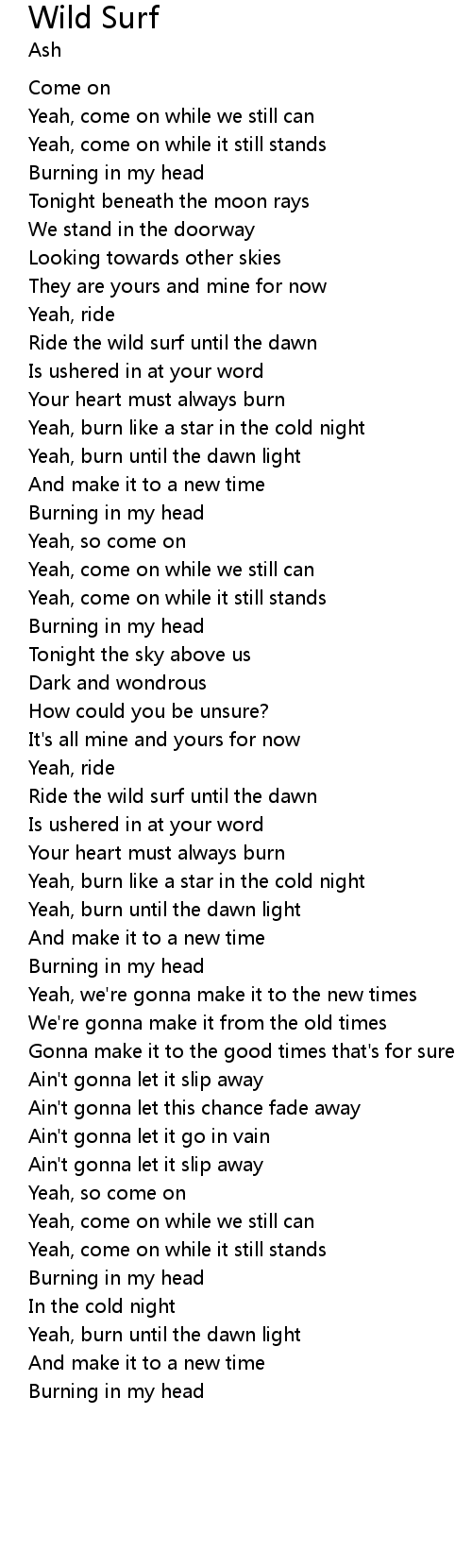 Ride the wild surf until the dawn |