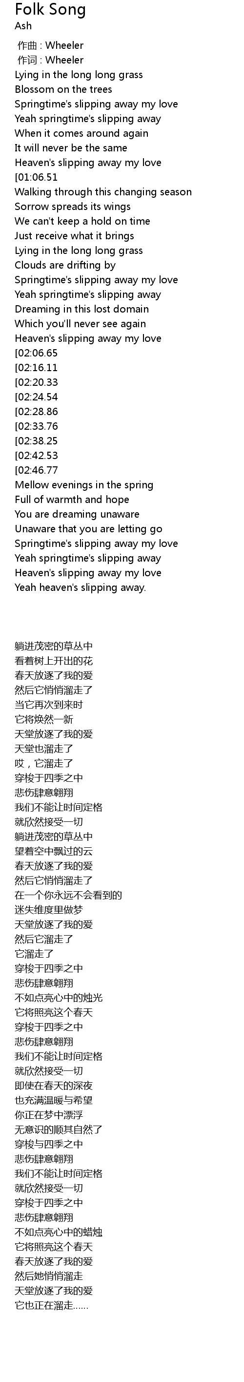 | [01:36.11] | Lying in the long long grass |