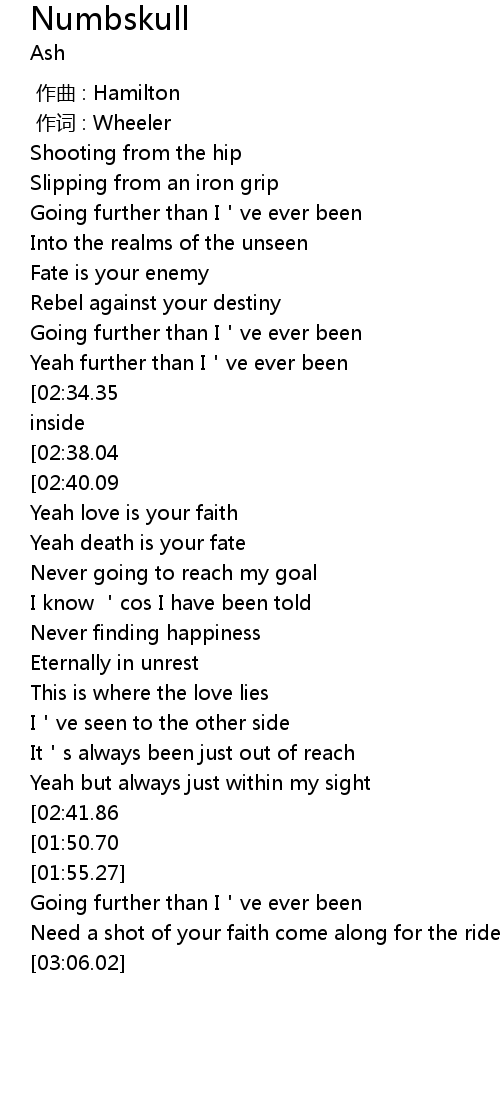 | [02:57.71][02:41.86][01:46.78] | Yeah love is your faith yeah death is your fate |