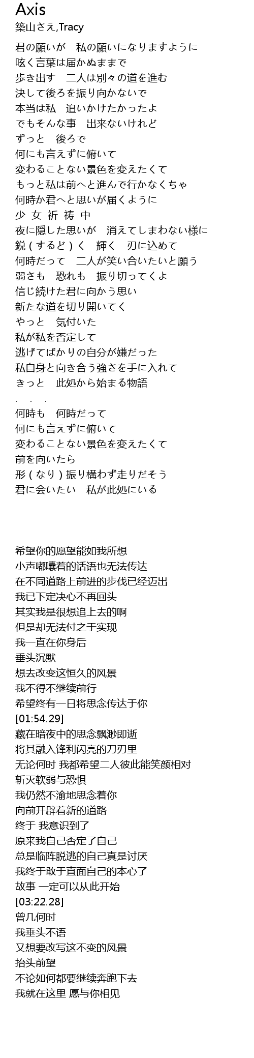 | [00:50.37] | 君の願いが 私の願いになりますように |