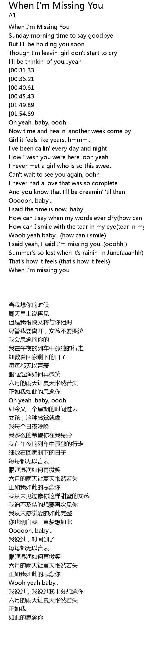 I said yeah, I said I'm missing you..(ooohh ) |