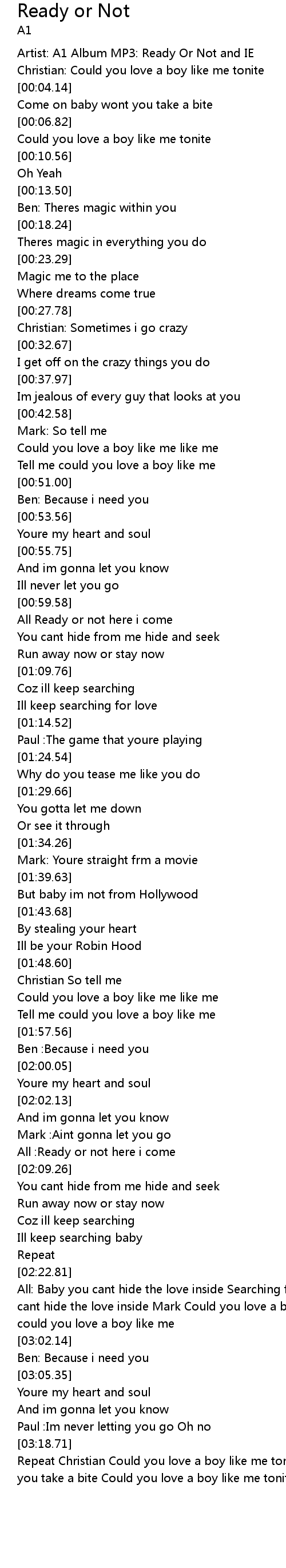 Artist: A1 Album MP3: Ready Or Not and IE |