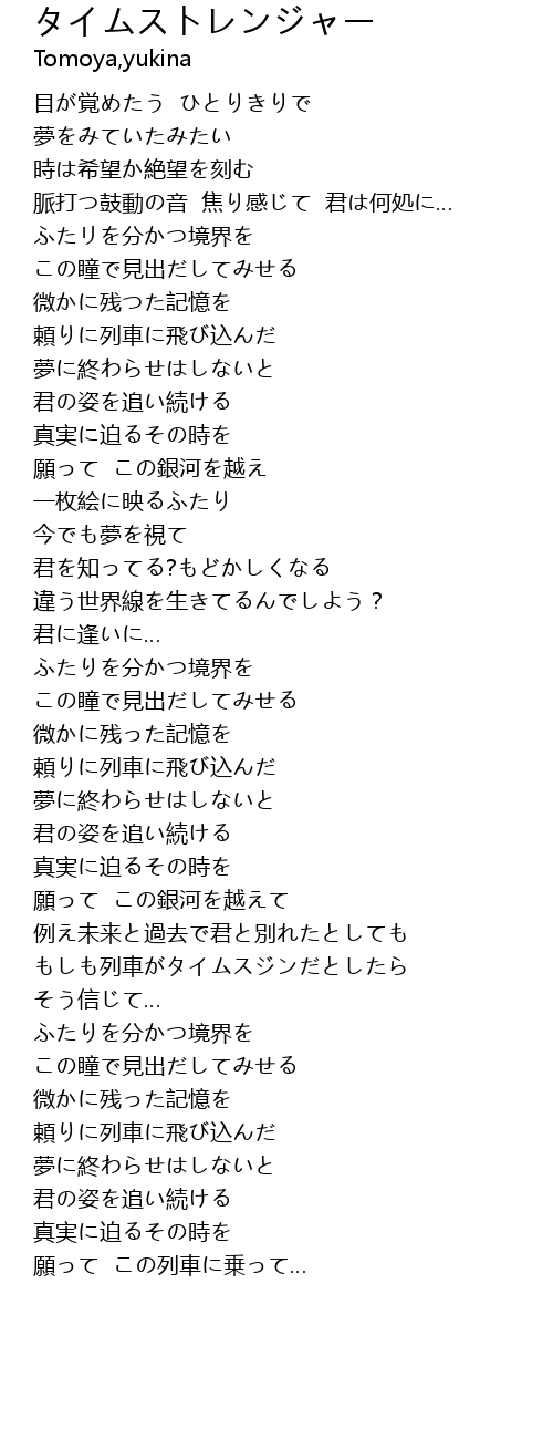 | [02:55.31] | もしも列車がタイムスジンだとしたら そう信じて… |