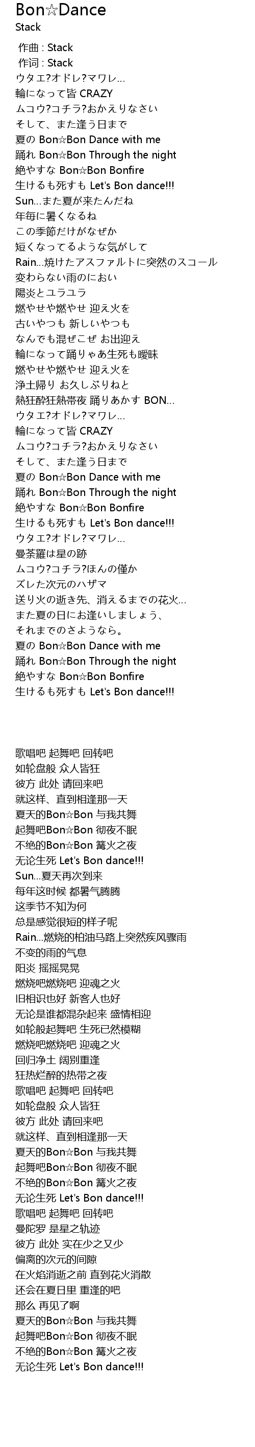 | [00:40.45] | shēng sǐ Let' s Bon dance!!! |