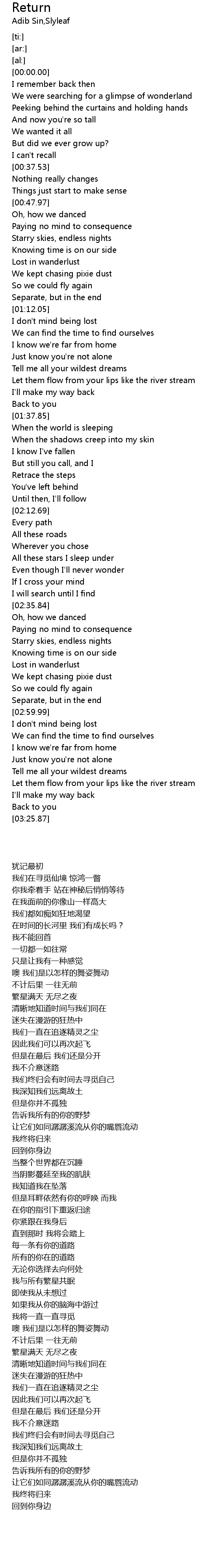 | [00:15.25] | We were searching for a glimpse of wonderland |