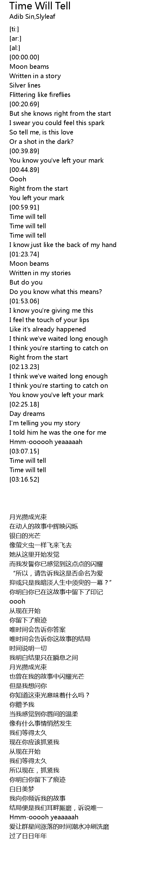 | [03:07.72] | Time will tell |