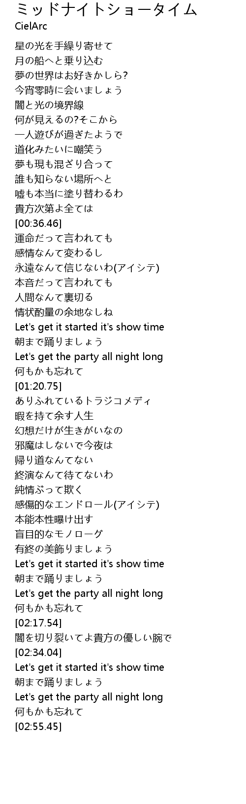 | [00:49.24] | 永遠なんて信じないわ(アイシテ) |