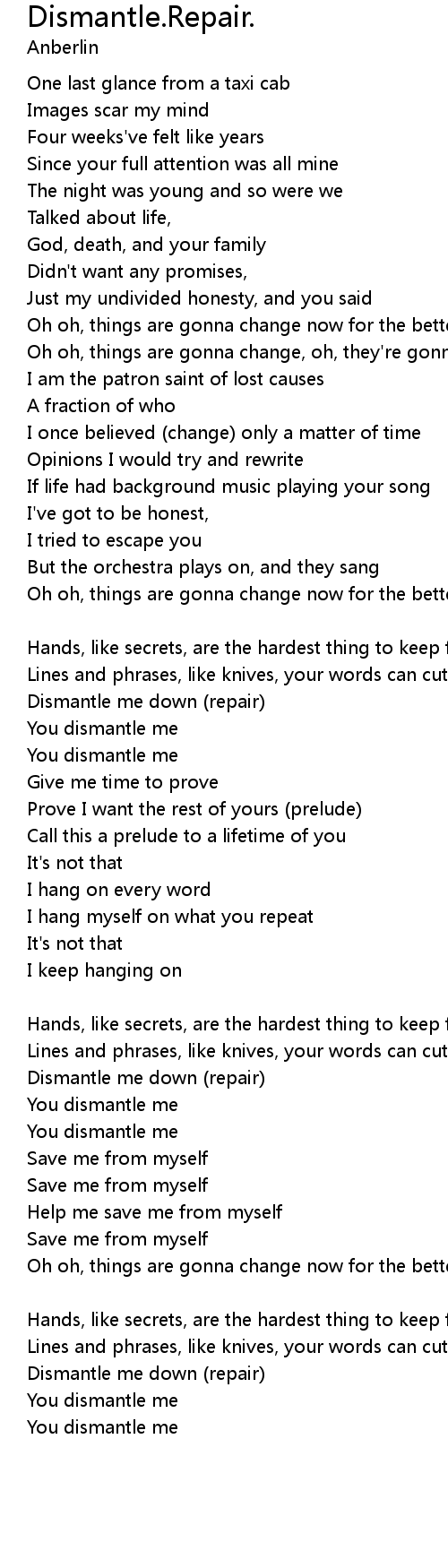 You dismantle me |
