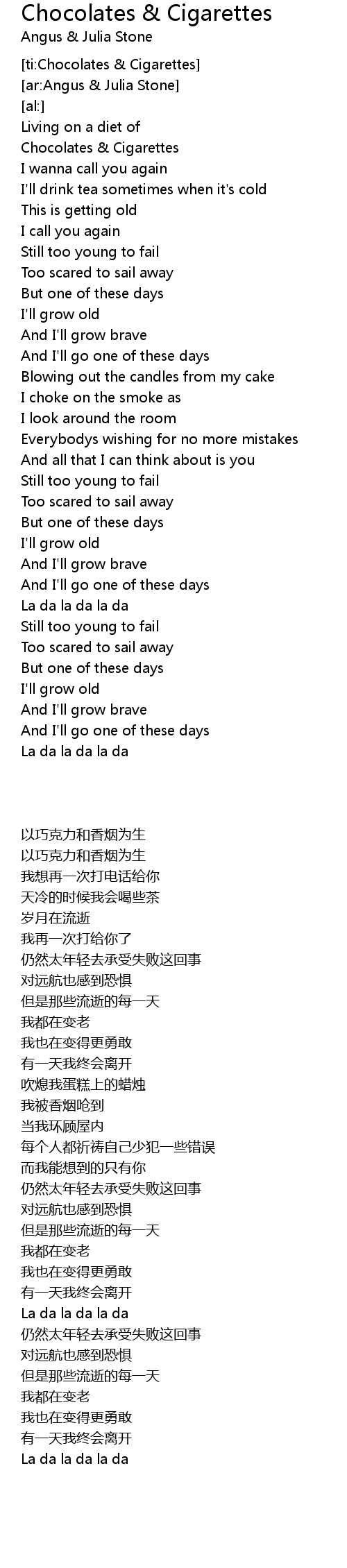 [ti:Chocolates & Cigarettes] |