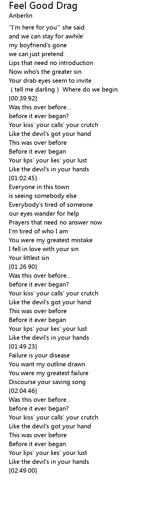 | [02:30.92] | Your kiss' your calls' your crutch |
