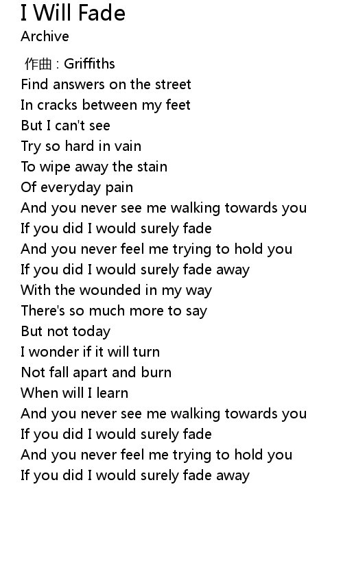 | [02:12.190] | If you did I would surely fade |