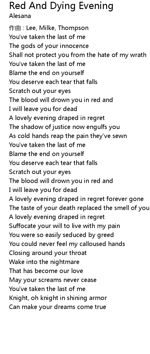 | Song | Red And Dying Evening |