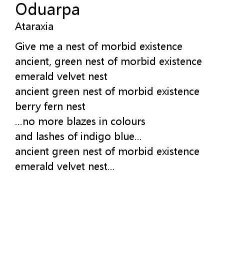 | Give me a nest of morbid existence | |