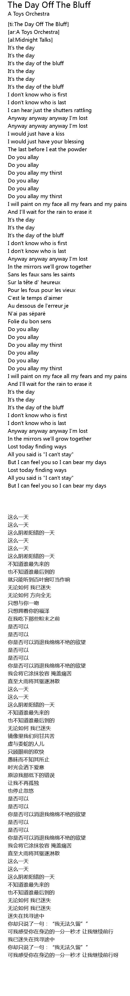 | [02:22.51] | I will paint on my face all my fears and my pains |