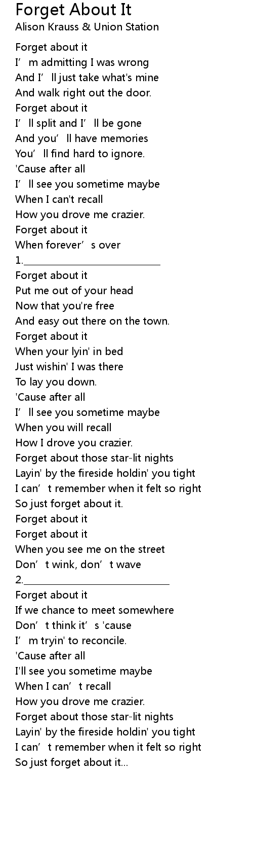 | Song | Forget About It |