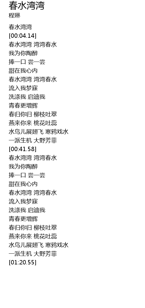 | [00:13.76] | 春水湾湾 湾湾春水 |