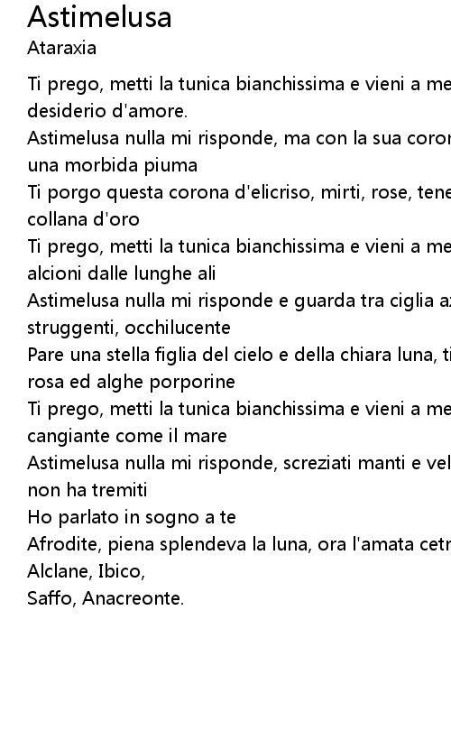 Astimelusa nulla mi risponde e guarda tra ciglia azzurre con quegli occhi struggenti, occhilucente |