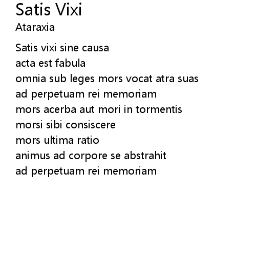 | Song | Satis Vixi |